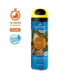Fluorescent, il offre une bonne visibilité et il peut être utilisé sur diverses surfaces, même humides, telles que béton, bitume, gazon, sable et bois.