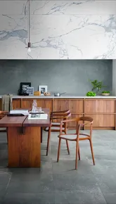 Les effets esthétiques du métal avec ses oxydations de surface typiques se combinent à la vocation tactile du ciment ; cette matière unique véhicule un langage contemporain et puissant tout en gardant une grande transversalité